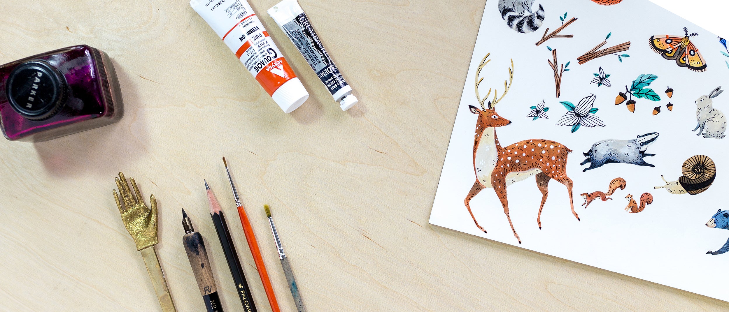 BreeAnn Kitsuki draws inspiration from nature and designs all products by starting with hand painted original works in gouache, watercolor, and pen & ink.