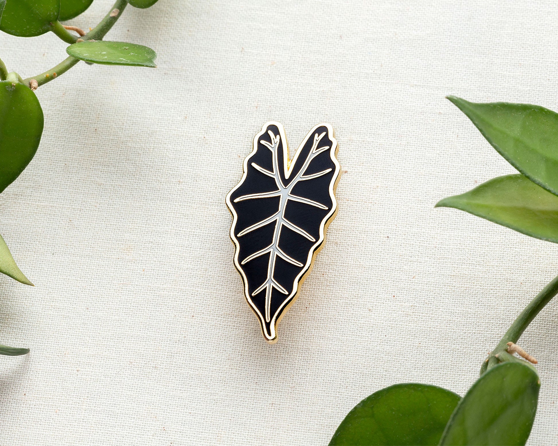 A gorgeous pin made for plant people! Our Alocasia enamel pin in black shows off your love for striking, lush tropical plants. Collect both Alocasia pins as an adorable accessory set.