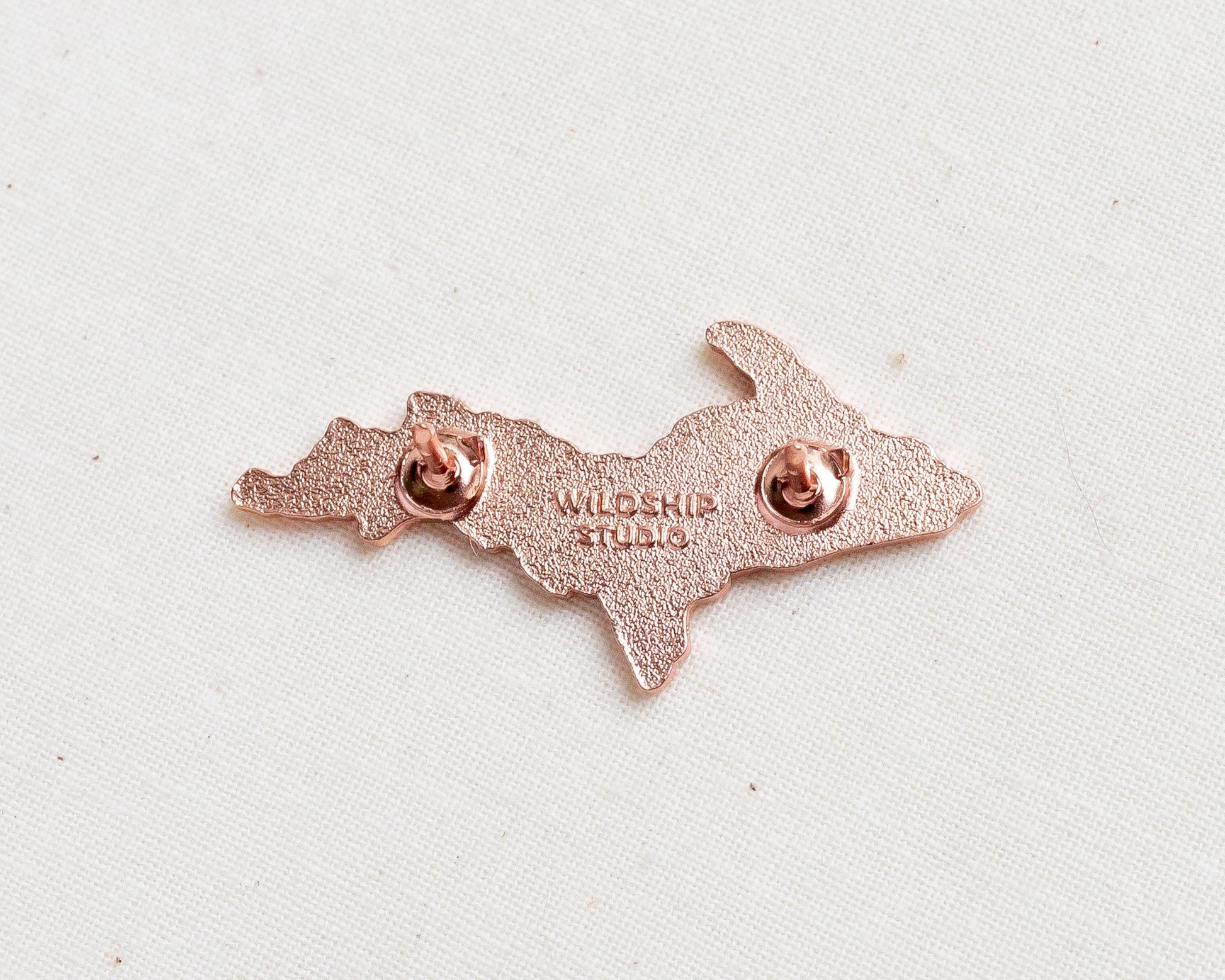 Made with high quality, polished copper plating and hard enamel. Includes black rubber clutches for secure fastening.