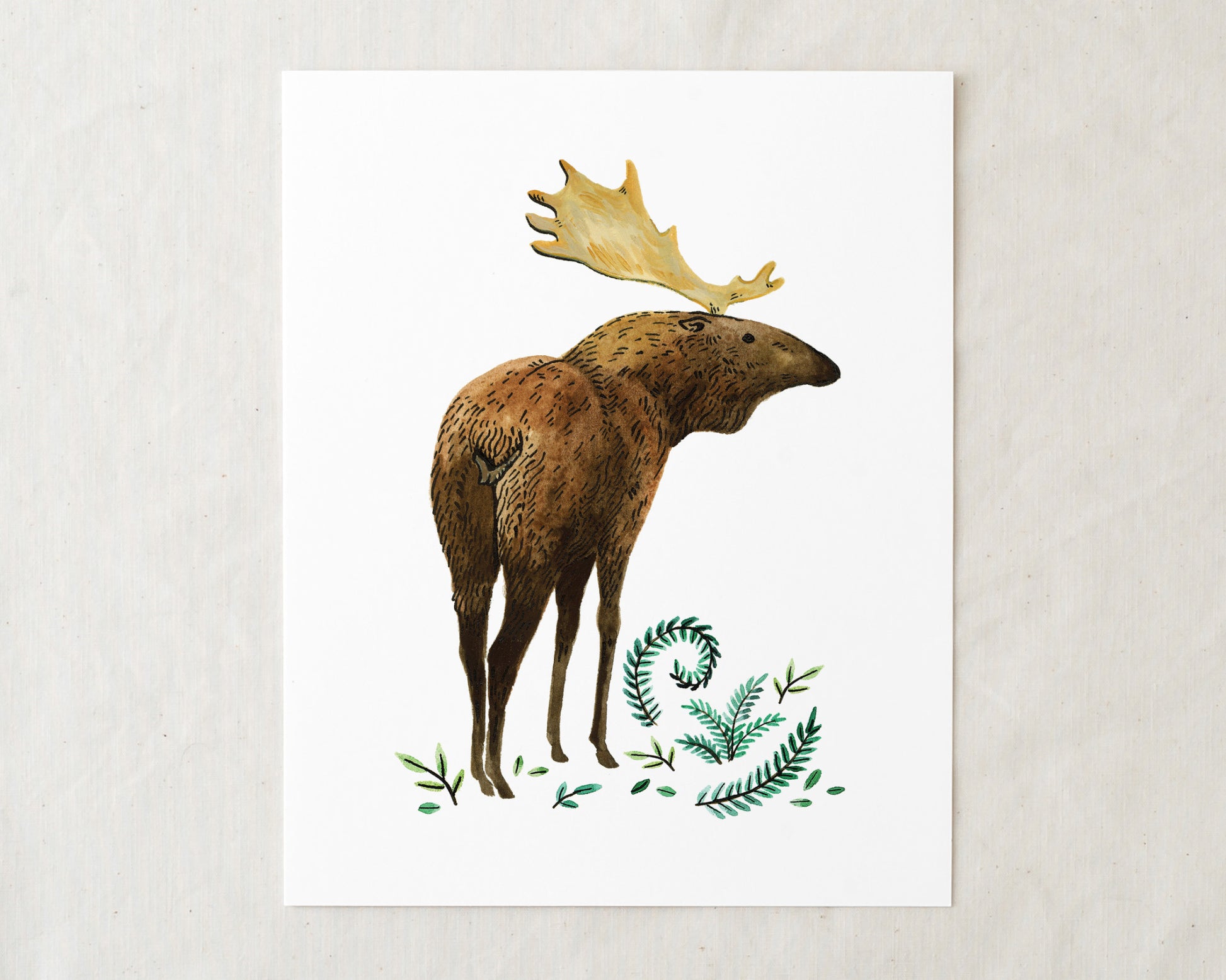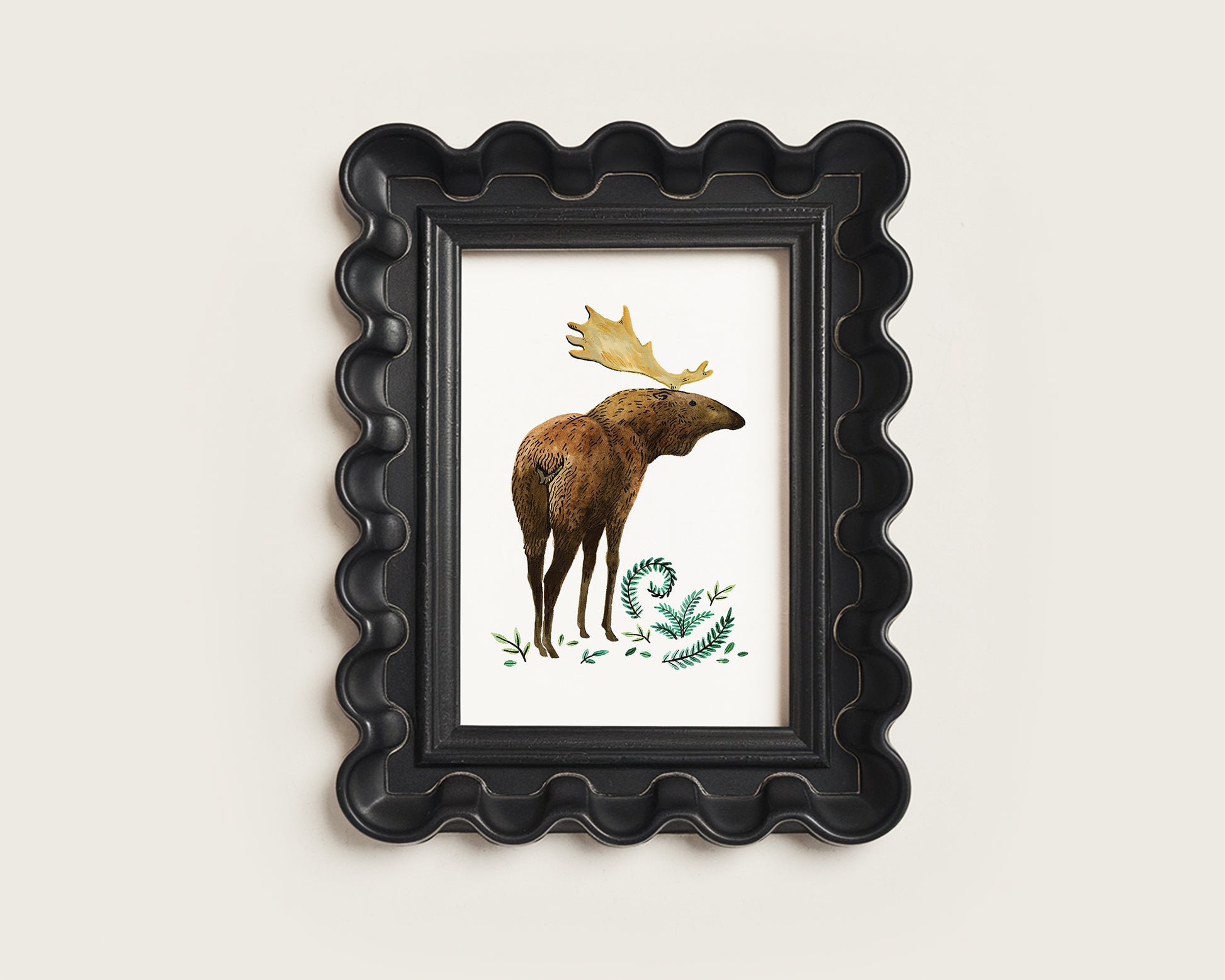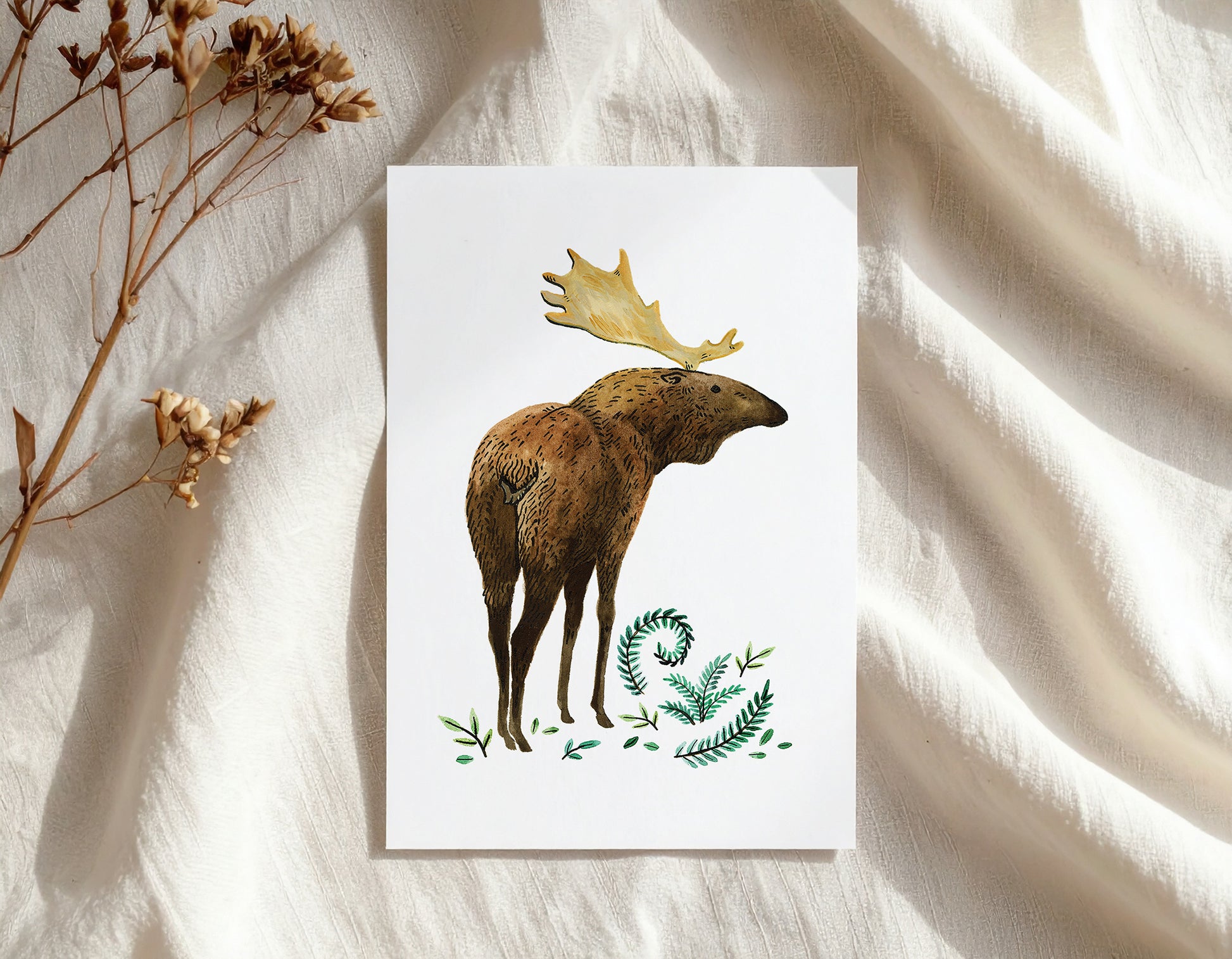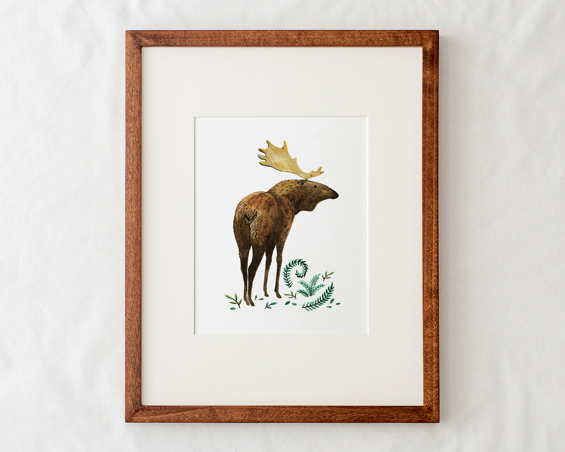 This moose is giving tall, calm, and slightly curious energy—just how we like it. Painted with rich earthy tones and surrounded by forest ferns, he’s the quiet king of the woods and your new favorite wall buddy.