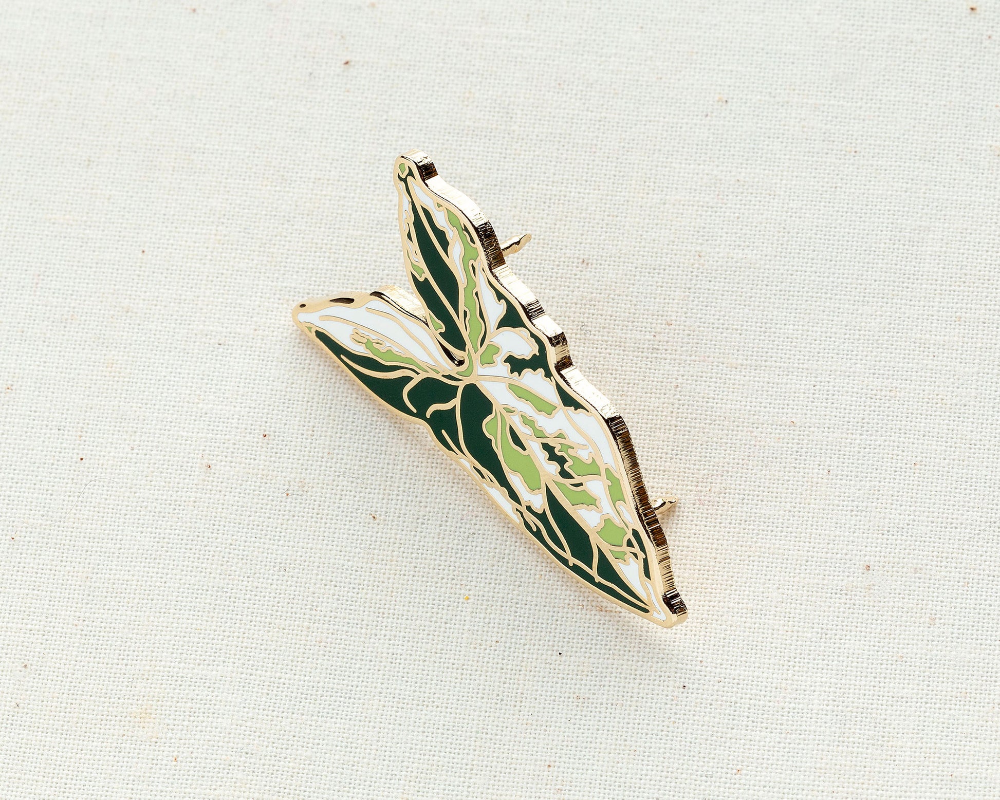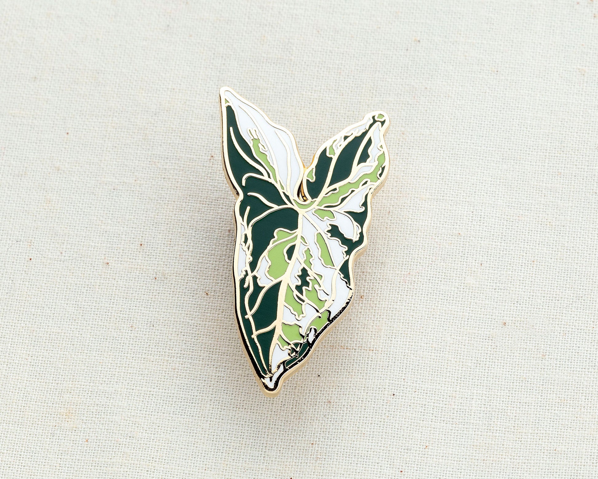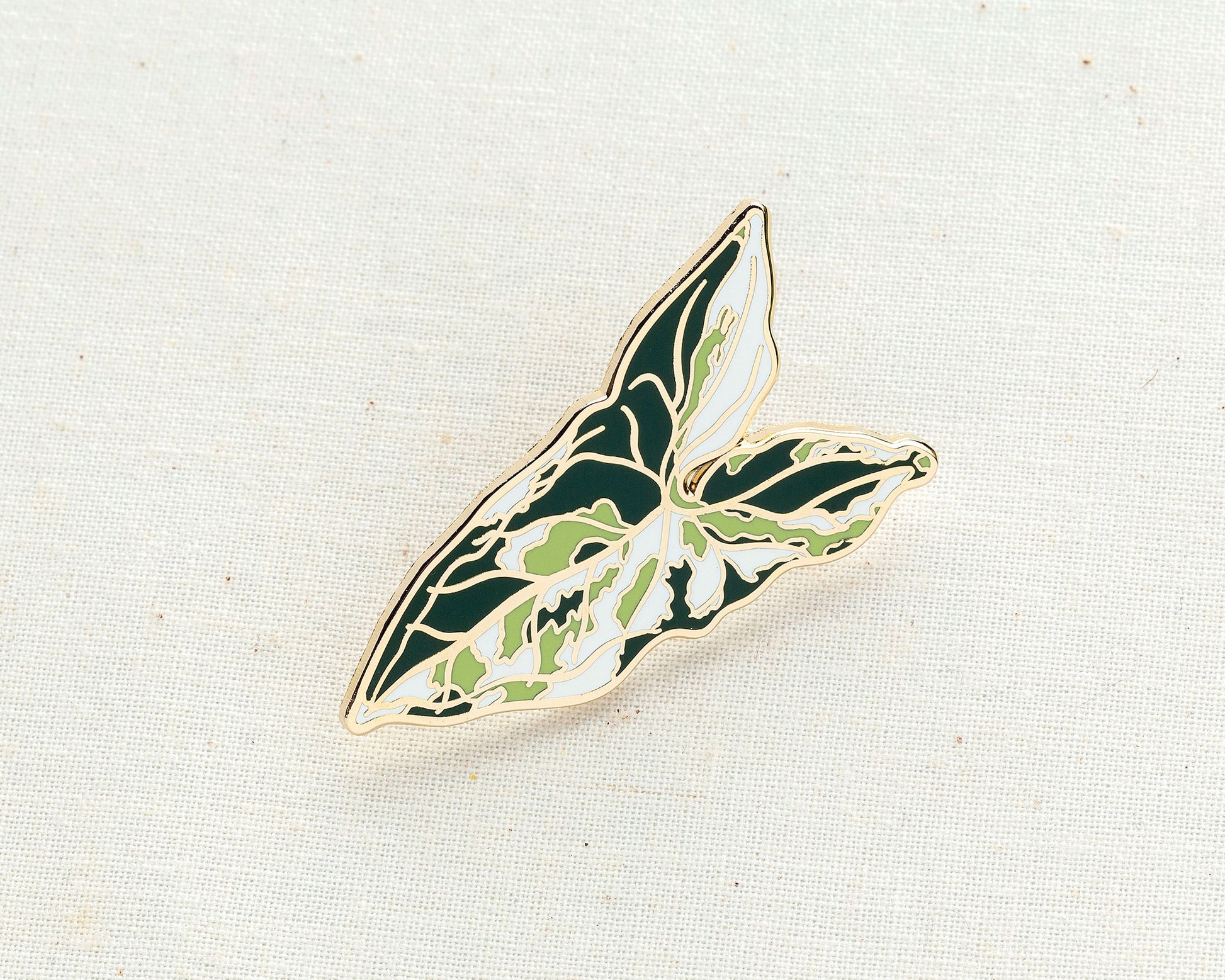 A pin that any true plant-lover will notice. The Syngonium Albo, also called an arrowhead plant, is an easy-to-grow but hard-to-find beauty. Just like the real deal, our Syngonium Albo enamel pin features shades of green and white enveloped in a flash of gold.